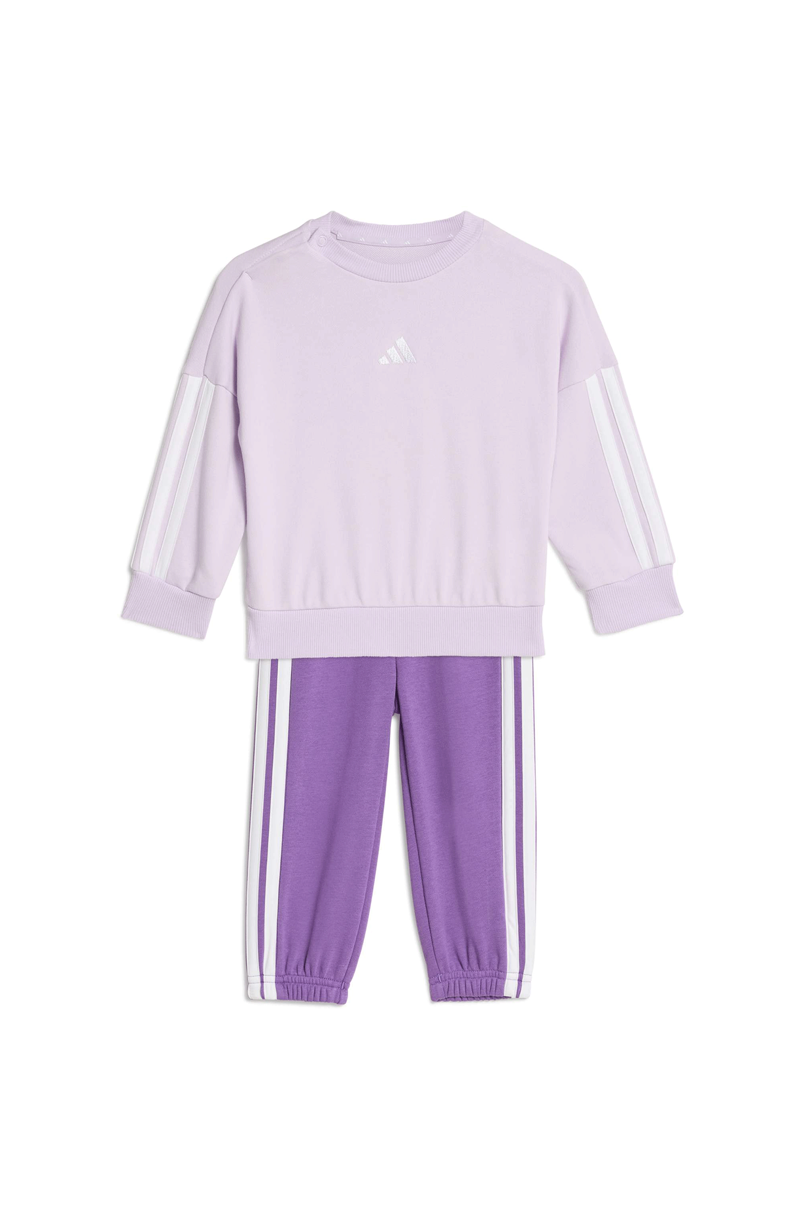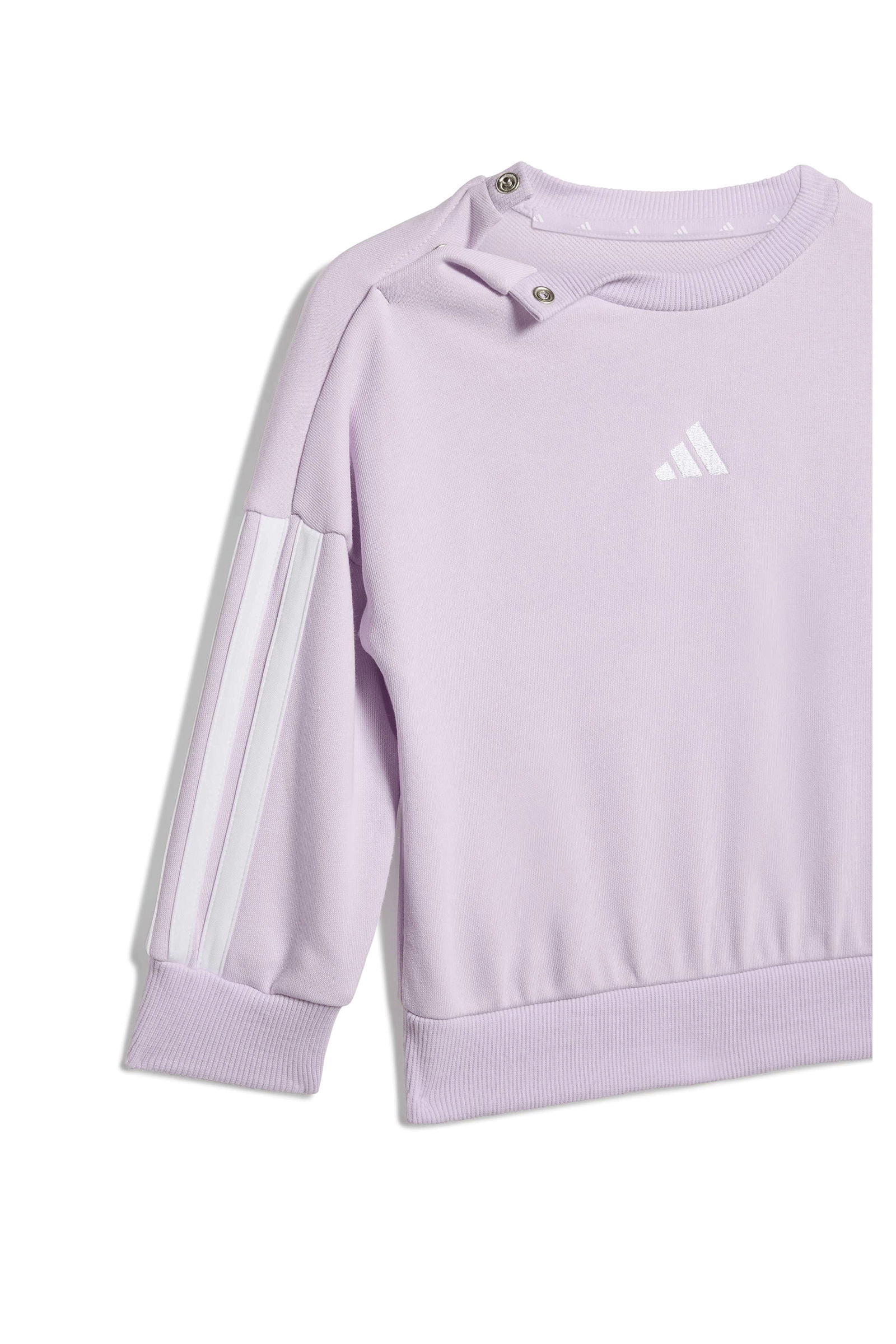 The crew-neck sweatshirt features a practical snap-button closure on the shoulder to make it easy to pull over the head. The ribbed elastic cuffs and waistband ensure a snug fit and warmth. Signature details like the chest badge and the 3 Stripes along the sleeves add a sporty touch.