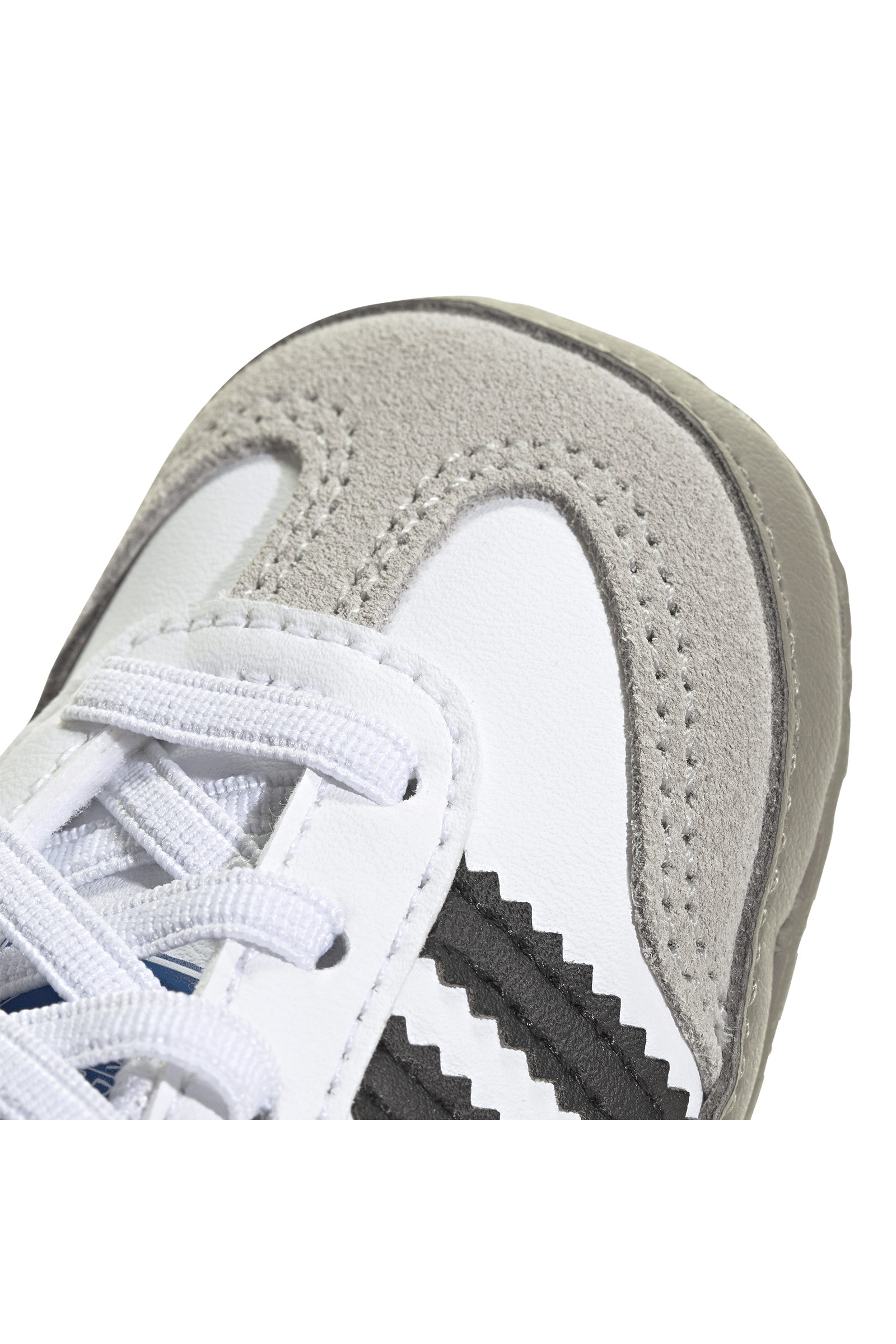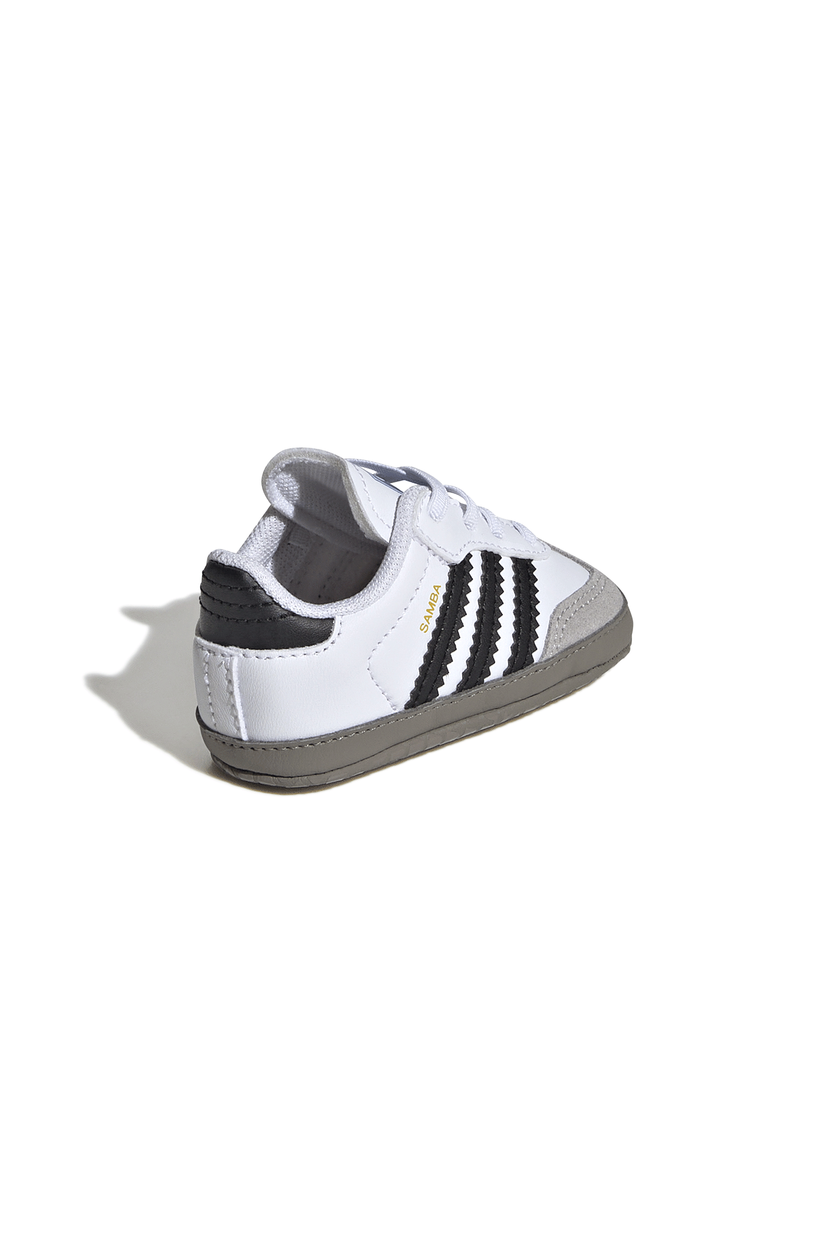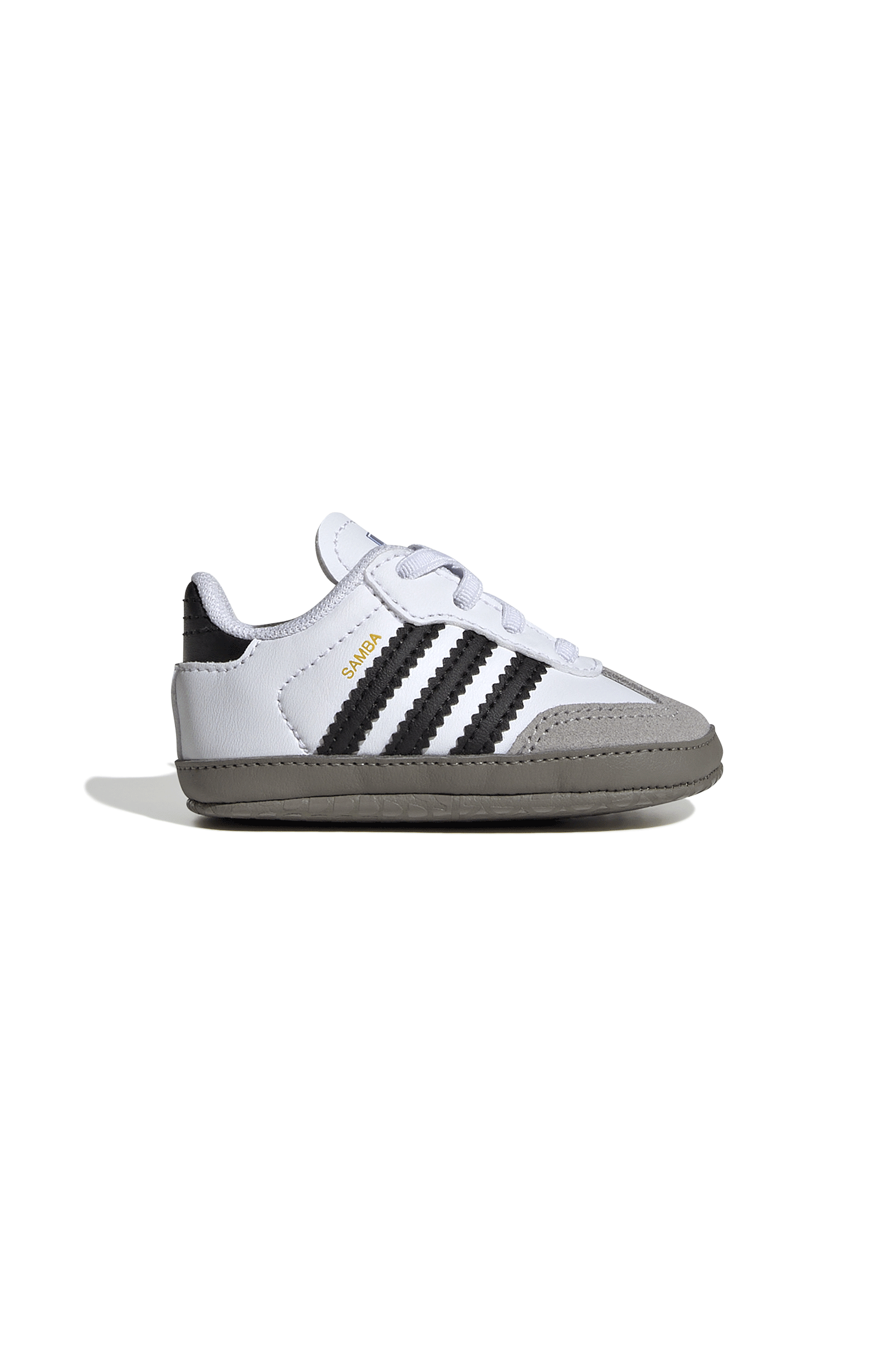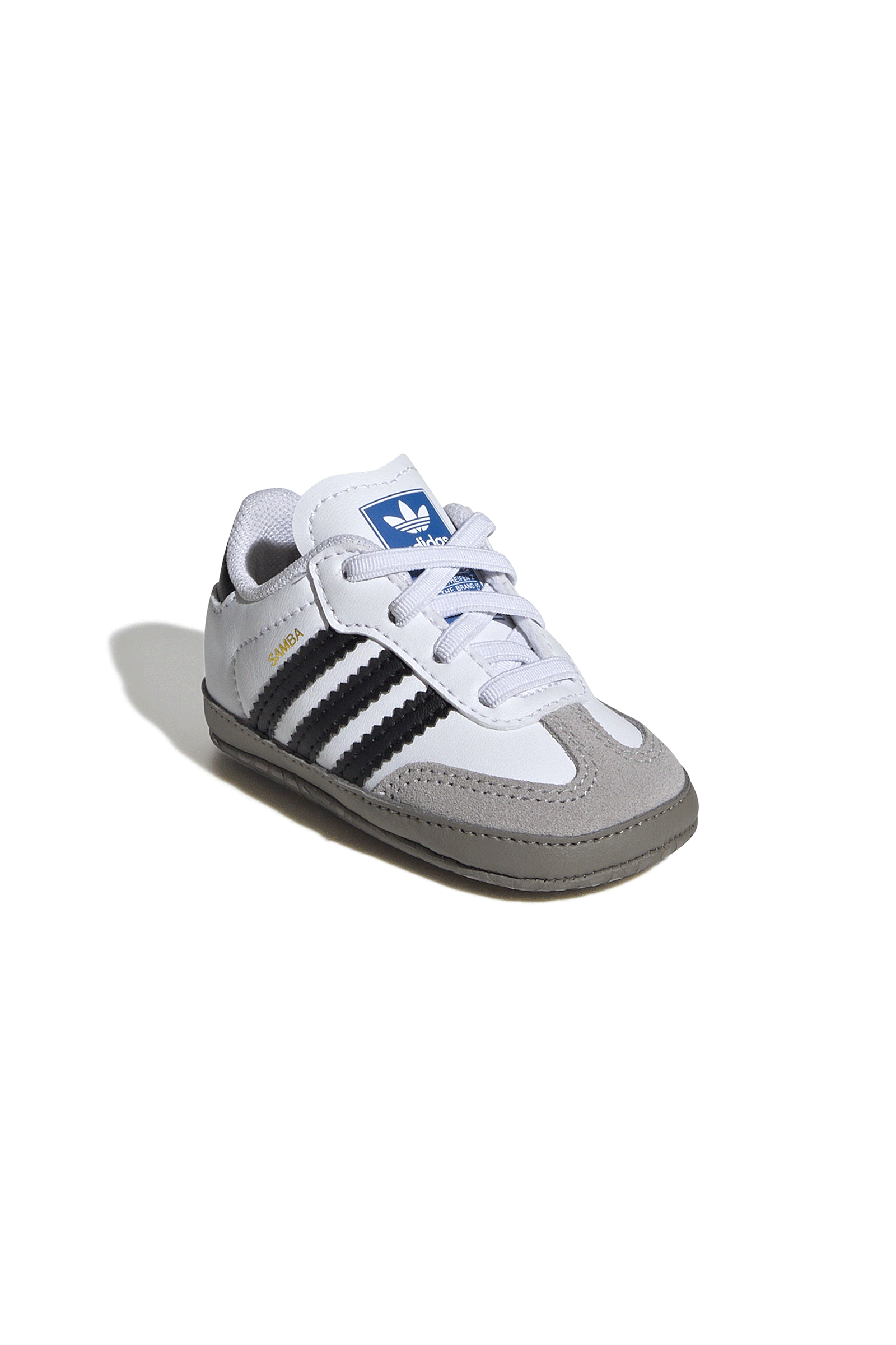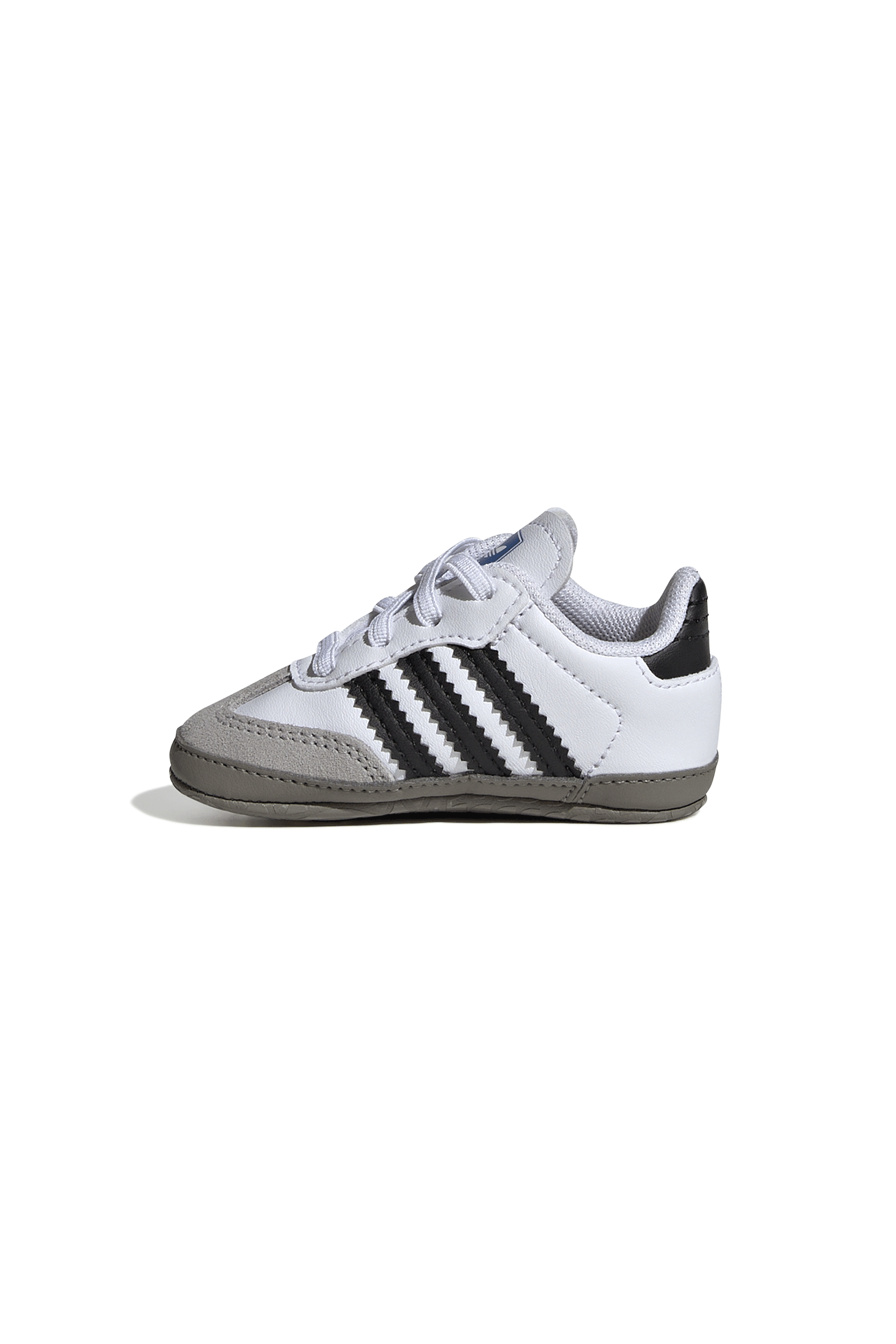 They come straight from the archives but projected into the future to redefine the concept of trend and casual style. The Adidas Samba OG even after 70 years continue to be a fashion icon you can't do without, even as a choice for little ones. In this crib version, which helps them take their first steps with its soft sole, the structure remains true to the 1950s soccer silhouette: the upper is made of soft leather, with a suede T-tip and the iconic 3 side strpes with serrated profiles. The fabric-lined interior ensures lightness and freshness, while the elastic lace-up closure ensures an easy fit.