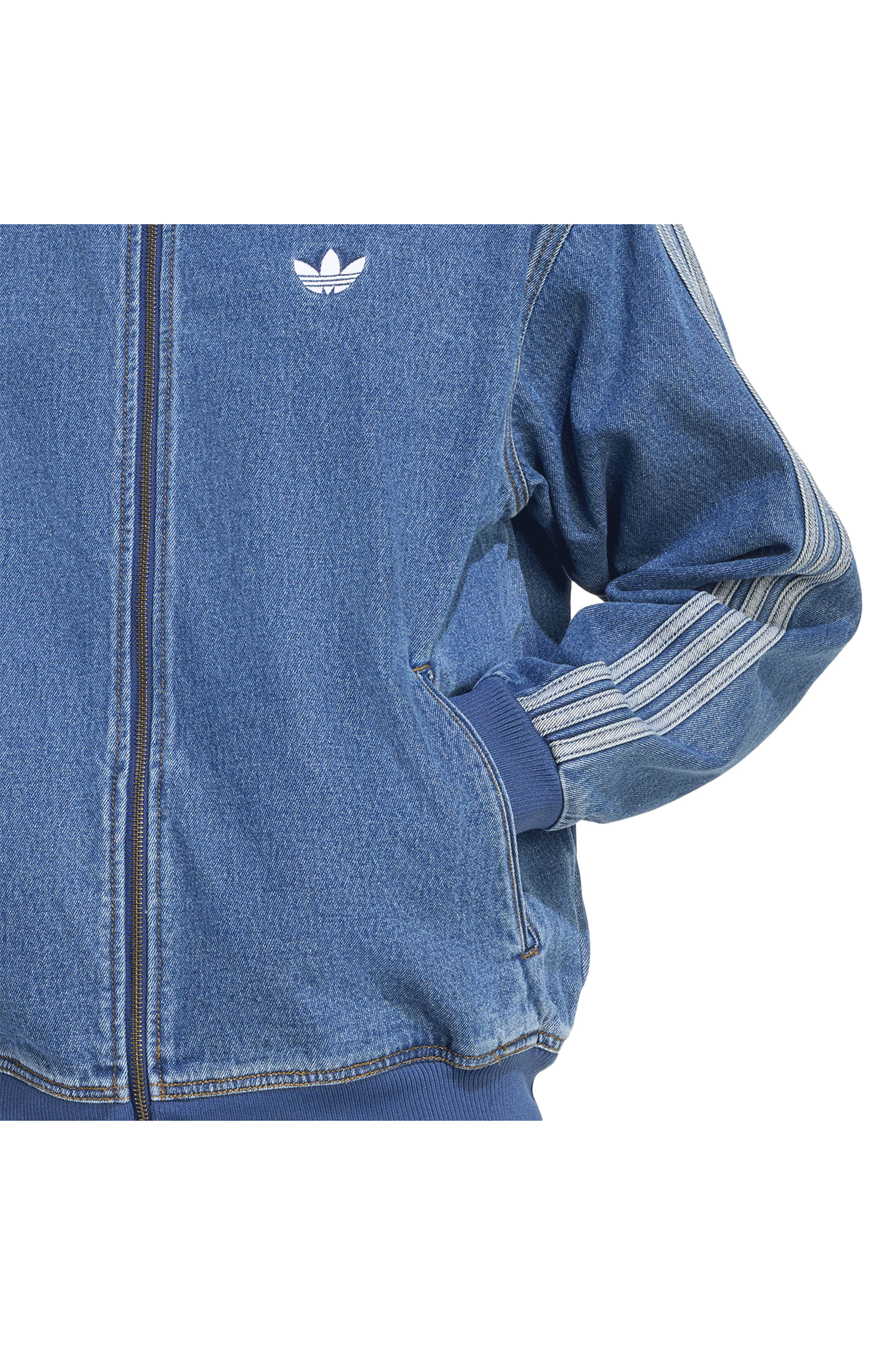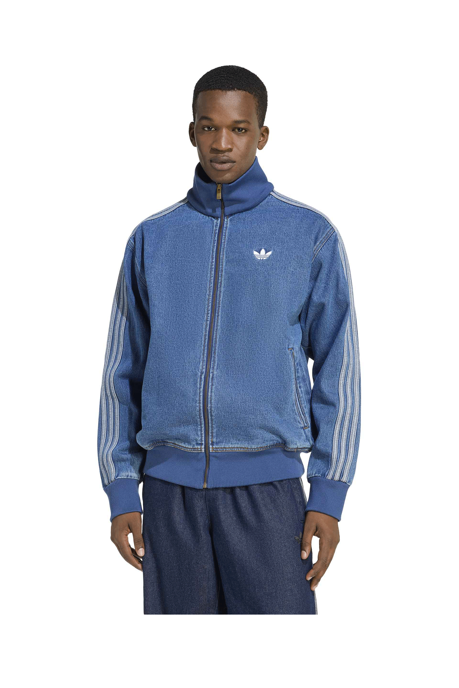 One of Adidas' most iconic pieces is revisited in an Adicolor version made of denim. The classic Firebird style remains, but now features a contemporary cut. Details such as the 3 embroidered bands along the sleeves and the Clover logo sewn onto the chest are a must. The high neck offers greater protection in cold and windy conditions, and features a ribbed elastic finish such as the wrists and waist. The front zip pockets are useful for keeping your hands warm or storing items. Loose fit for added comfort.