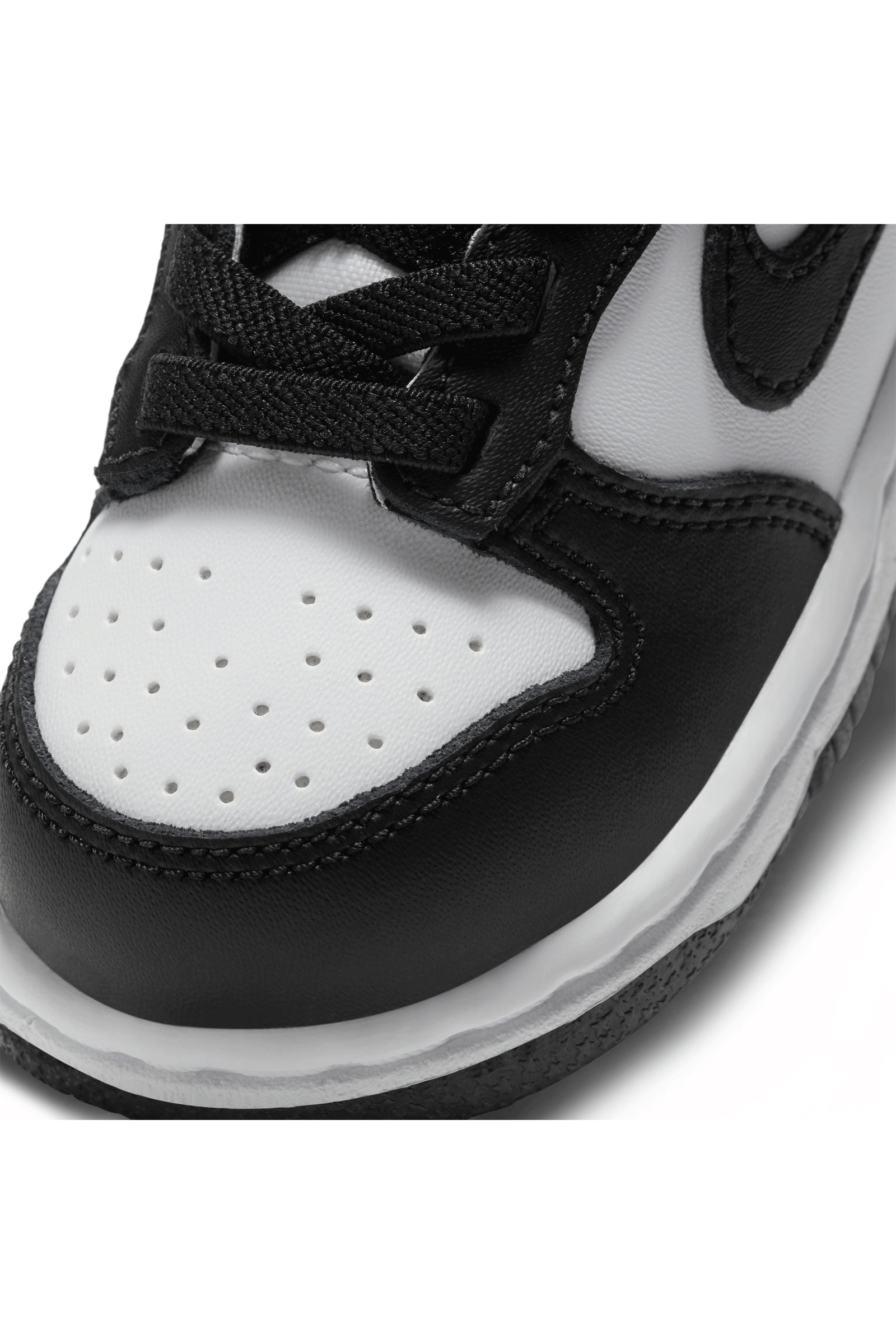 With their unmistakable retro look, the Nike Dunk Low recalls American college basketball styles from the mid-1980s. With its bright color combination, this new version enriches the white background with a contrasting black hue. The structure is made of sturdy leather, with canvas fabric on the collar and tongue and the iconic Swoosh dominating the sides. The white midsole creates a sharp contrast with the two-tone upper. Practical closure with elastic laces for easy fitting.