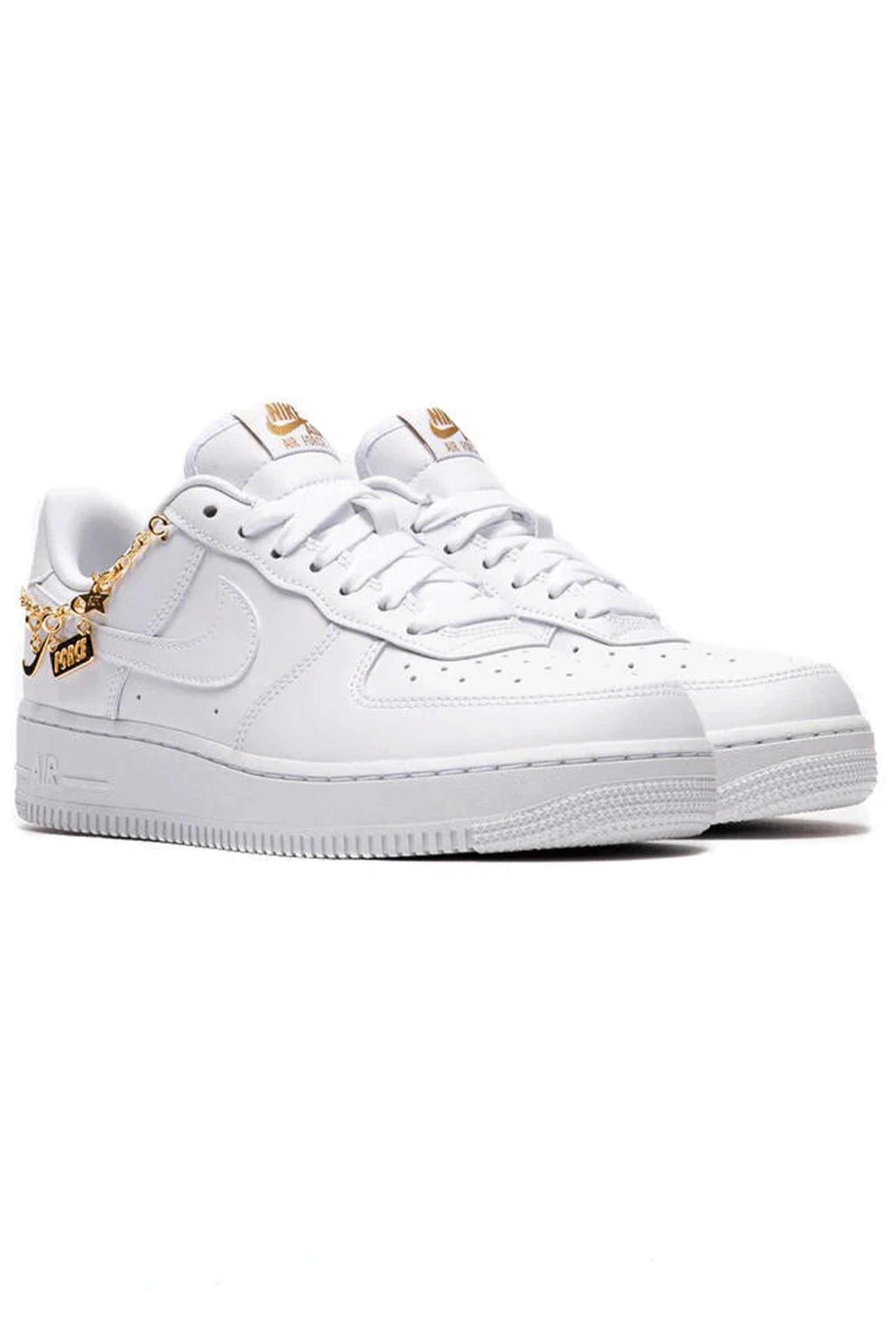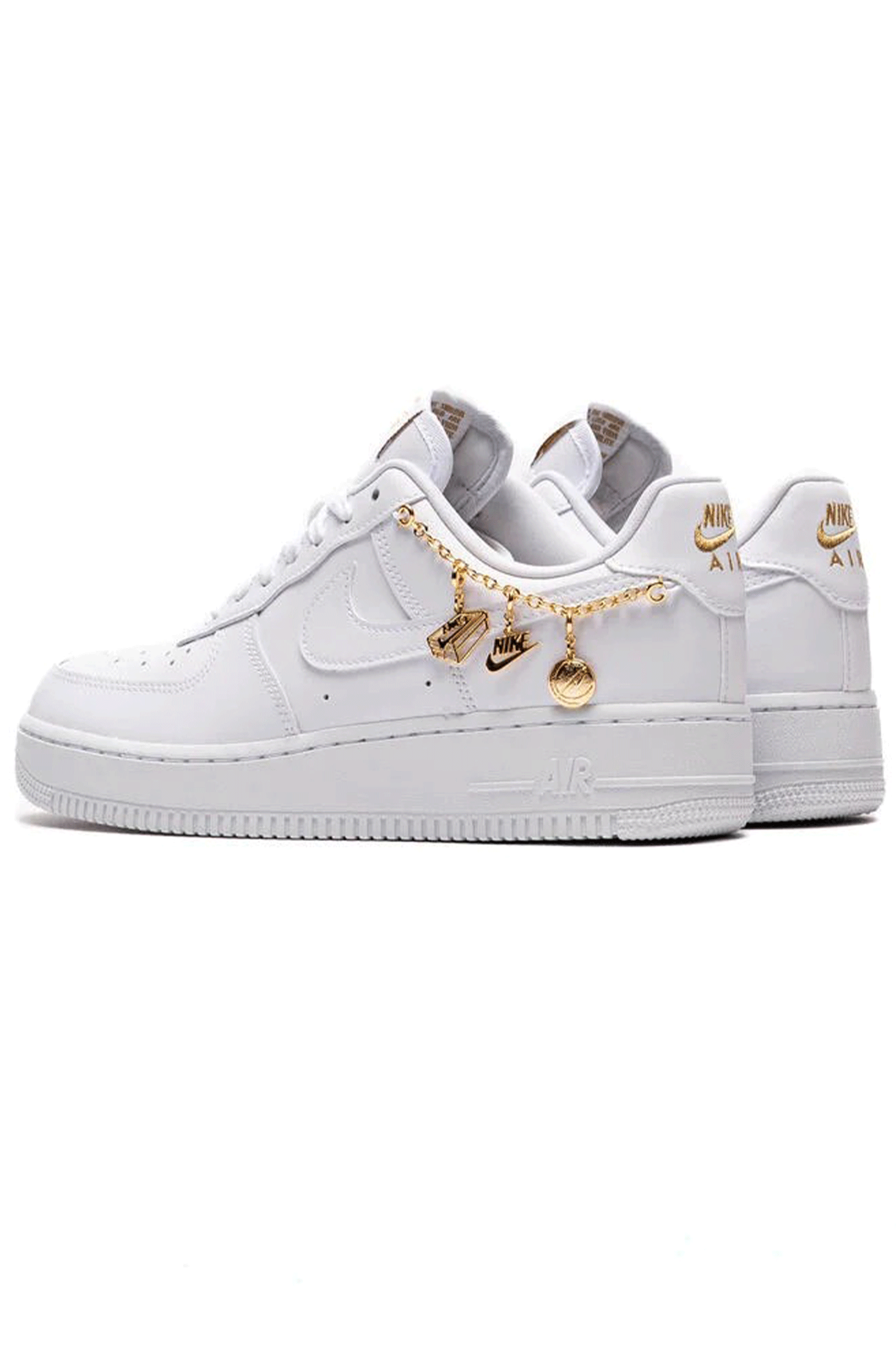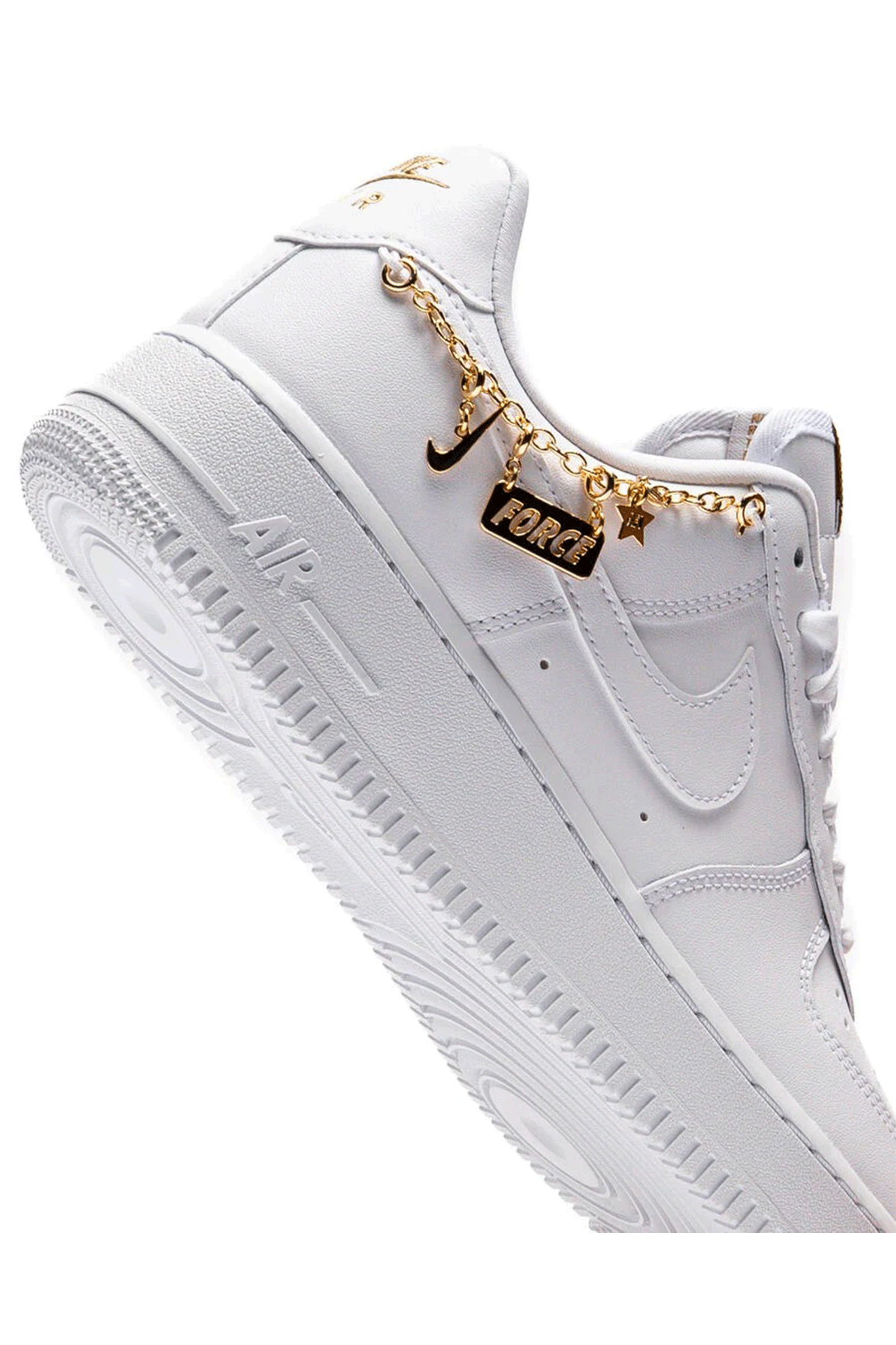 The shoe that made basketball history in the 1980s continues to be a classic you can count on: a perfect combination of comfort and style, so you can wear it both on the court and on the streets of the city in your free time. This new version, embellished with a gold chain with pendants that allows you to customize your look, remains faithful to the original structure: the sturdy upper is made of genuine leather and synthetic leather, with holes on the toe for breathability, and features tone-on-tone Swoosh logos on the sides. The personalized label on the tongue and Nike Air cushioning for lasting comfort are a must. Rubber outsole with circular patterns for a better grip.