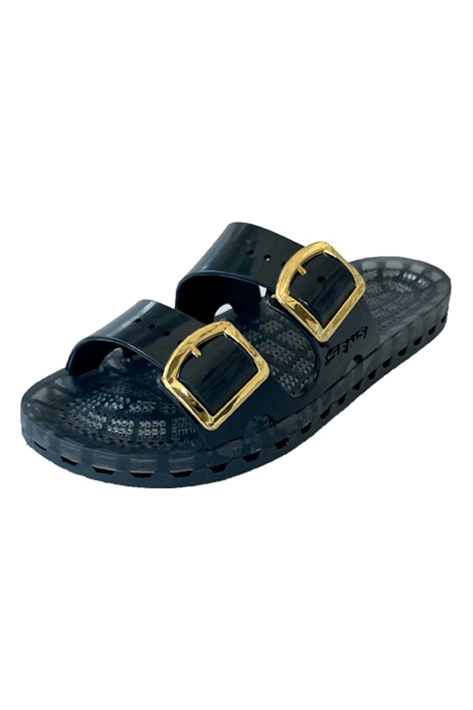 The La Jolla Flamingo model features a special PVC sole that combines a perforated bottom with runoff channels, which allow water to be expelled. The two upper straps can be adjusted through some special gold metal buckles. Comfortable for the beach and the pool, trendy for aperitifs and the city.