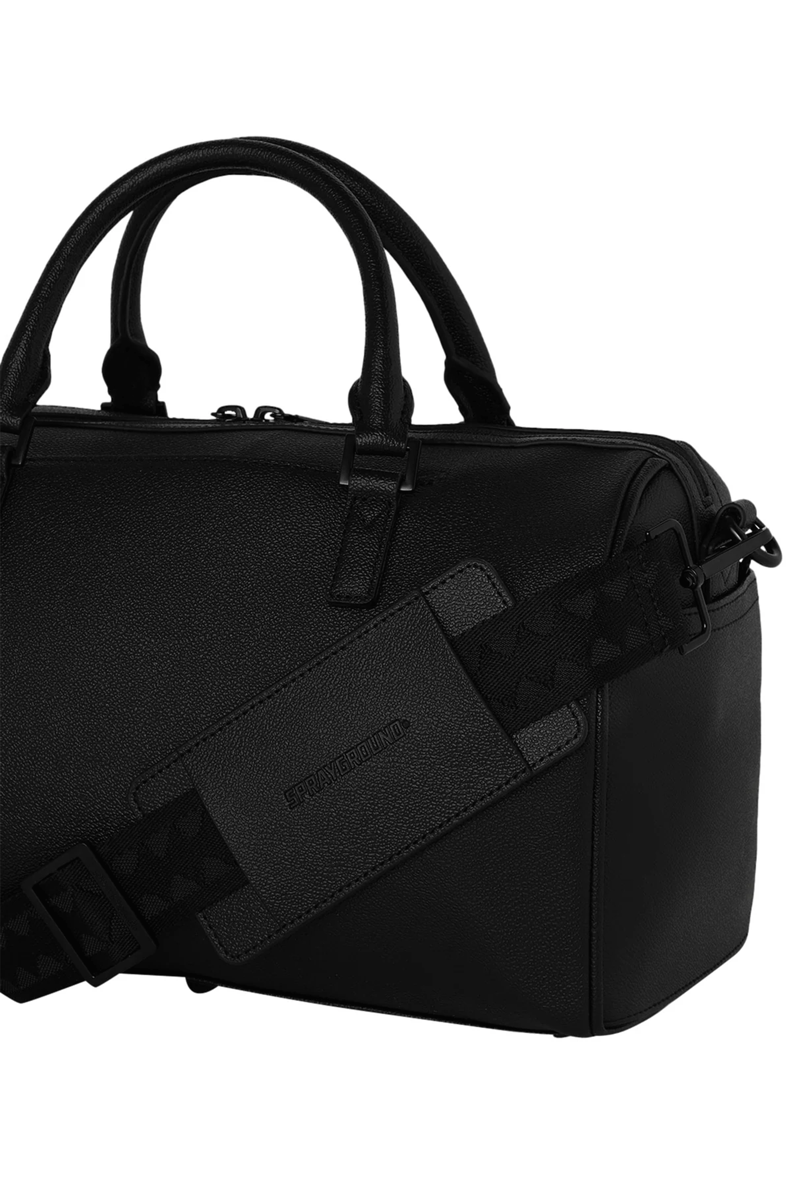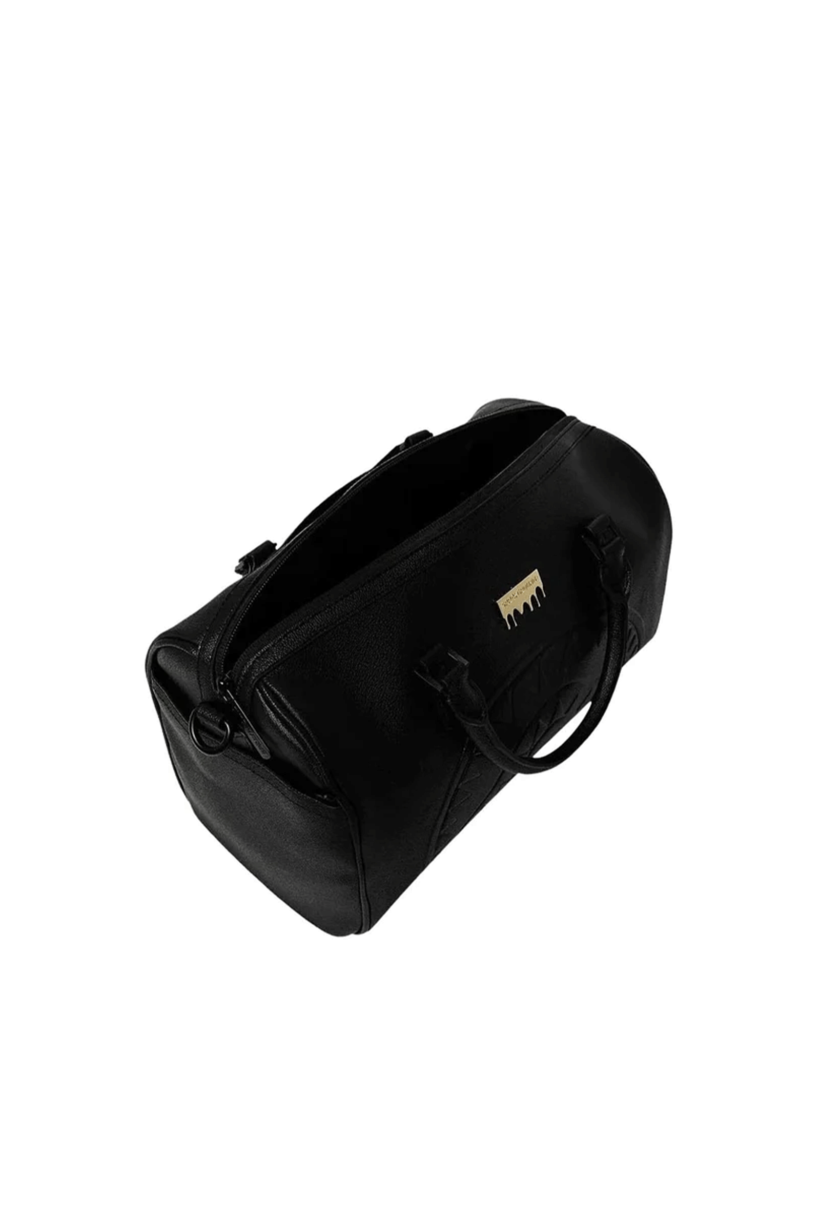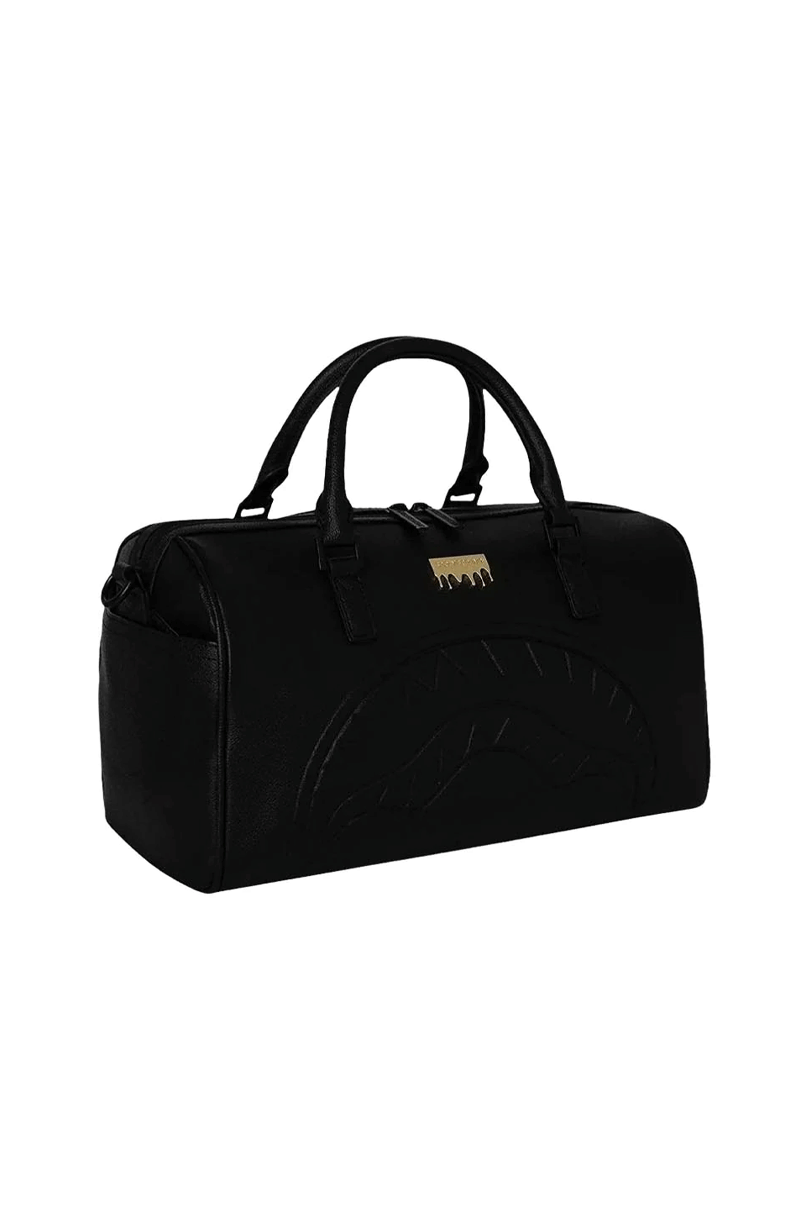 The new Gold Brick Luxe mini duffle bag from Sprayground is a triumph of elegance and originality: distinctive features like the Shark Mouth motif carved into the front combine with a monochromatic design and a gold plaque detail to create a refined style.