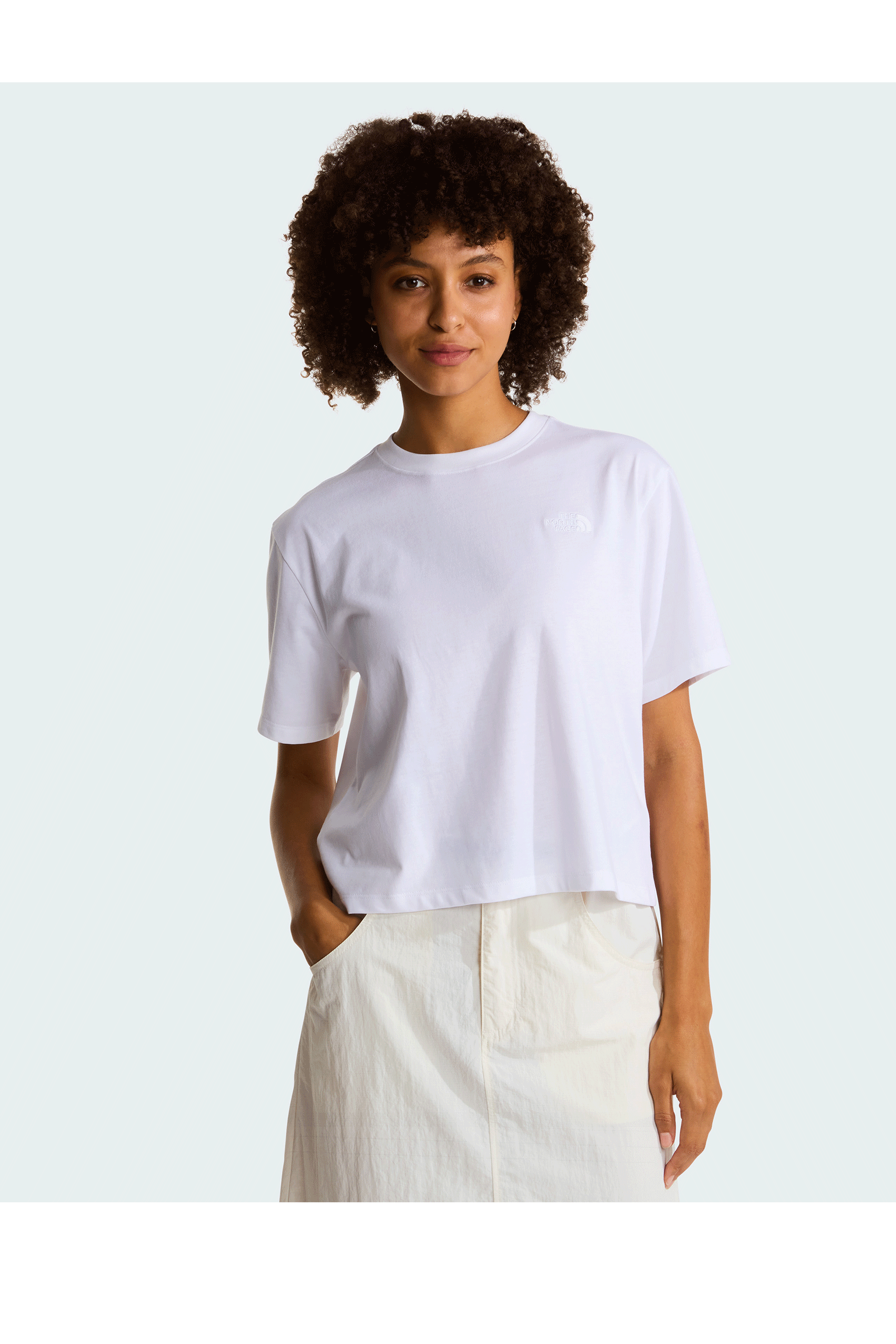 The Evolution Simple Dome Cropped Relaxed T-shirt by The North Face features a minimalist design and cropped cut, making it a simple and versatile piece that will add a unique touch to your everyday outfits.