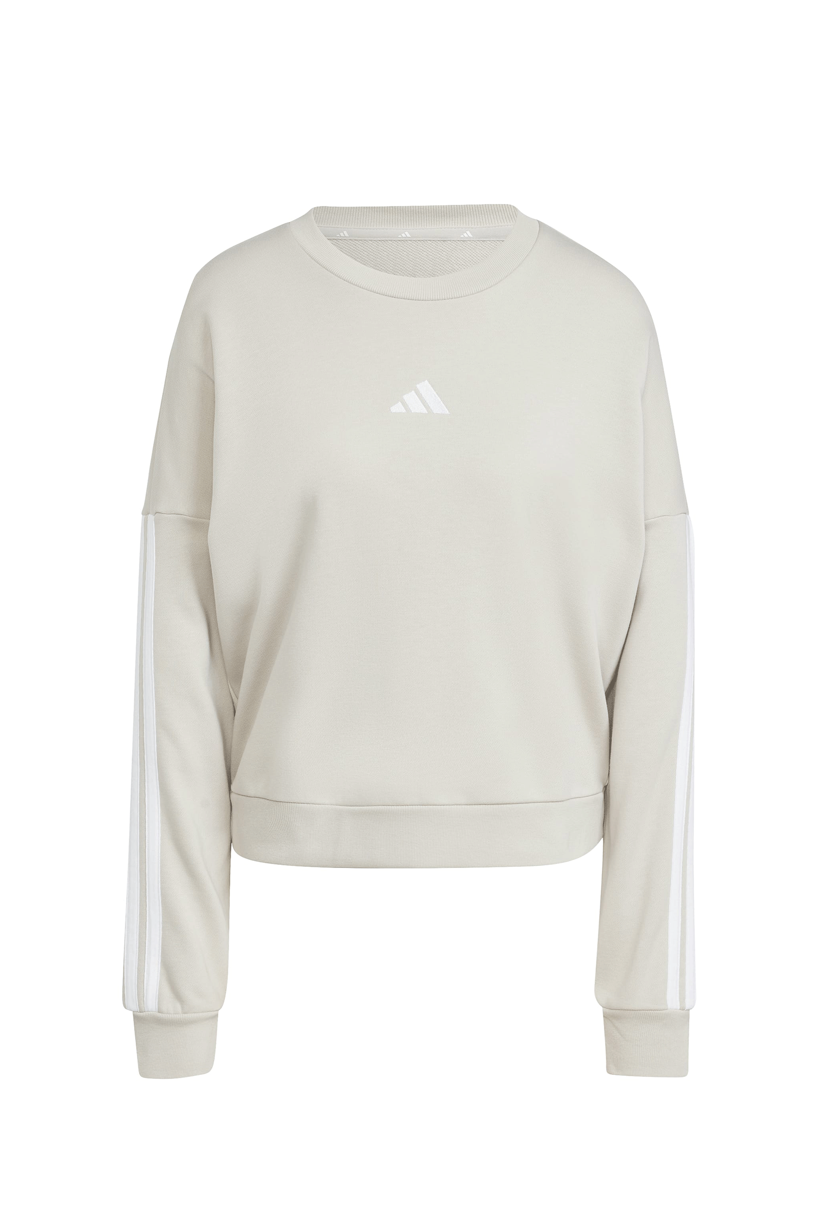 Felpa Adidas Essentials 3 Stripes French Terry Beige Bianco Donna