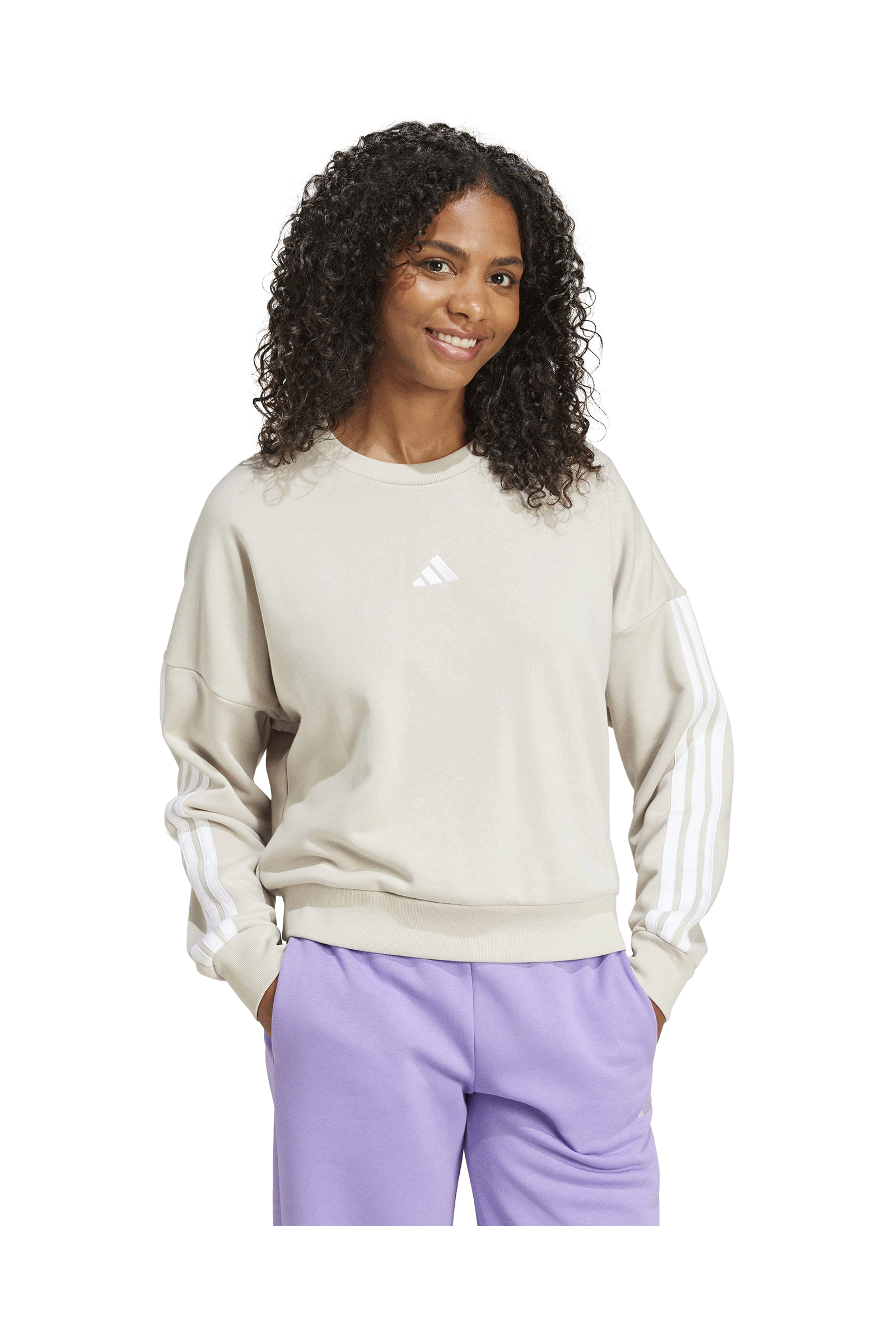 Felpa Adidas Essentials 3 Stripes French Terry Beige Bianco Donna ADIDAS CORE | Felpe | JE0014-