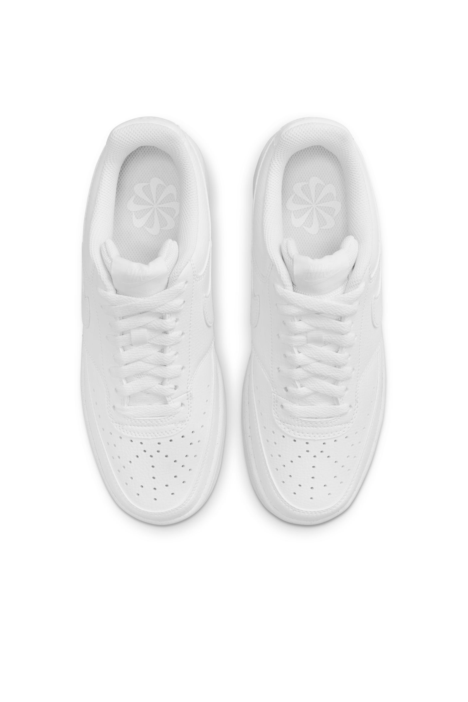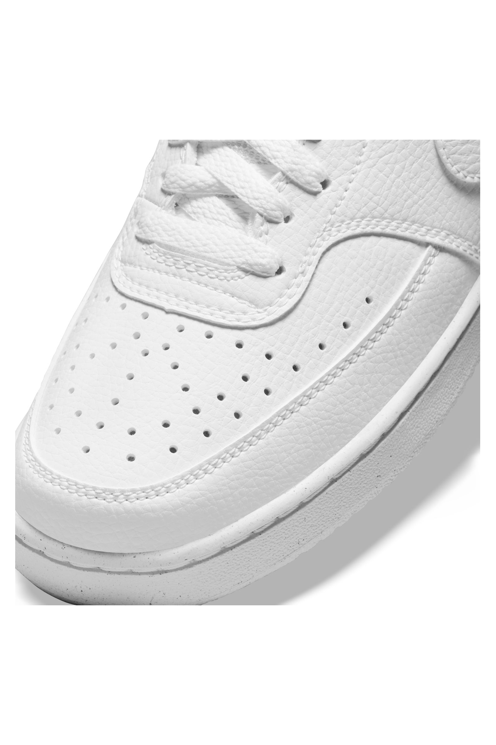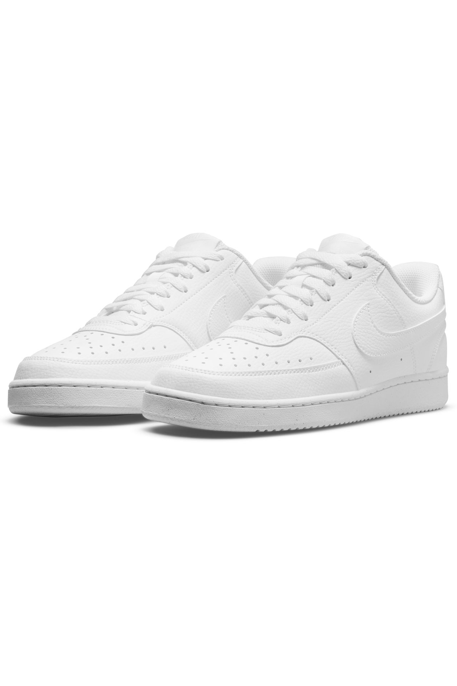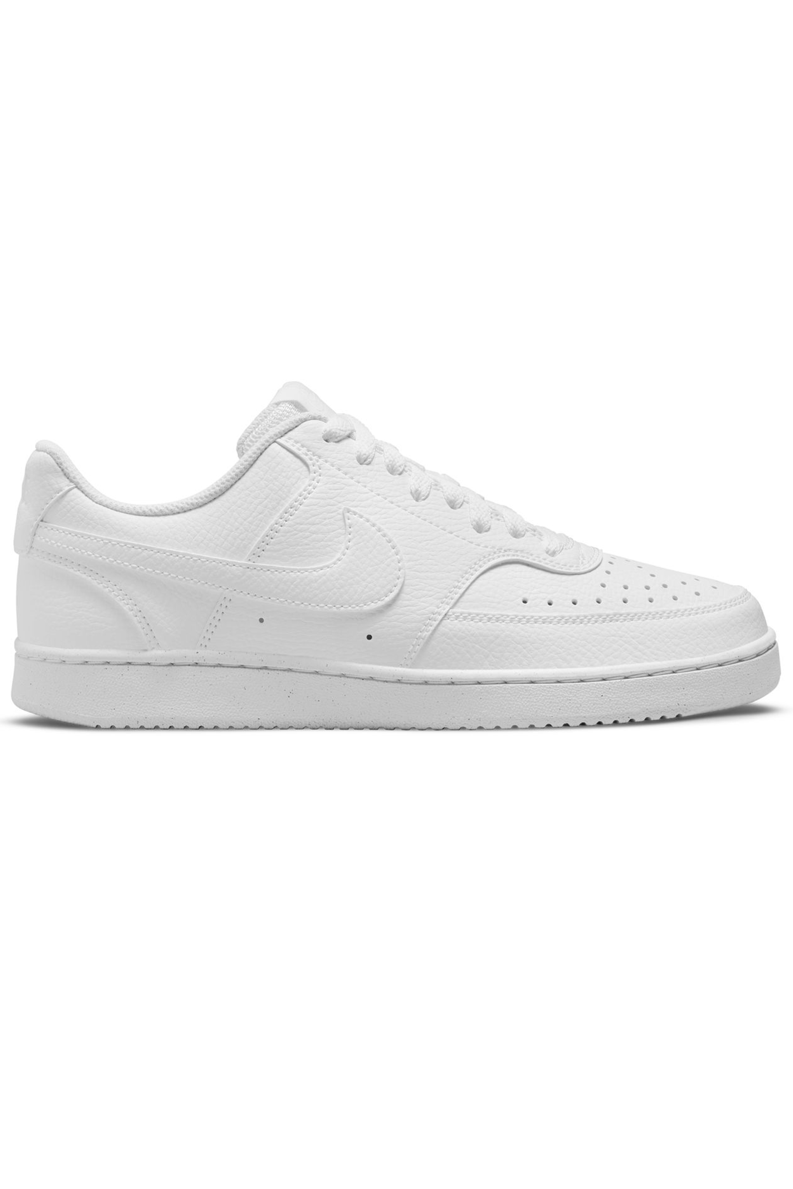Ricalcando il classico look da basket anni '80, le Nike Court Vision Low Next Nature dimostrano quanto il brand di Beaverton si stia impegnando per un mondo più sostenibile: il 20% del peso è stato infatti realizzato con materiali riciclati per ridurre emissioni di carbonio e rifiuti. La tomaia in morbida ma resistente pelle martellata ed il profilo basso stringato le rendono ideali da utilizzare quotidianamente. Il collare imbottito offre supporto e comfort al piede, mentre i fori applicati ai lati e sulla punta favoriscono traspirabilità e freschezza. Look completato dagli Swoosh laterali in tinta con impunture tono su tono, etichetta cucita sulla linguetta e logo wordmark applicato sul tallone. Suola in gomma con motivi circolari che assicurano aderenza al suolo.
