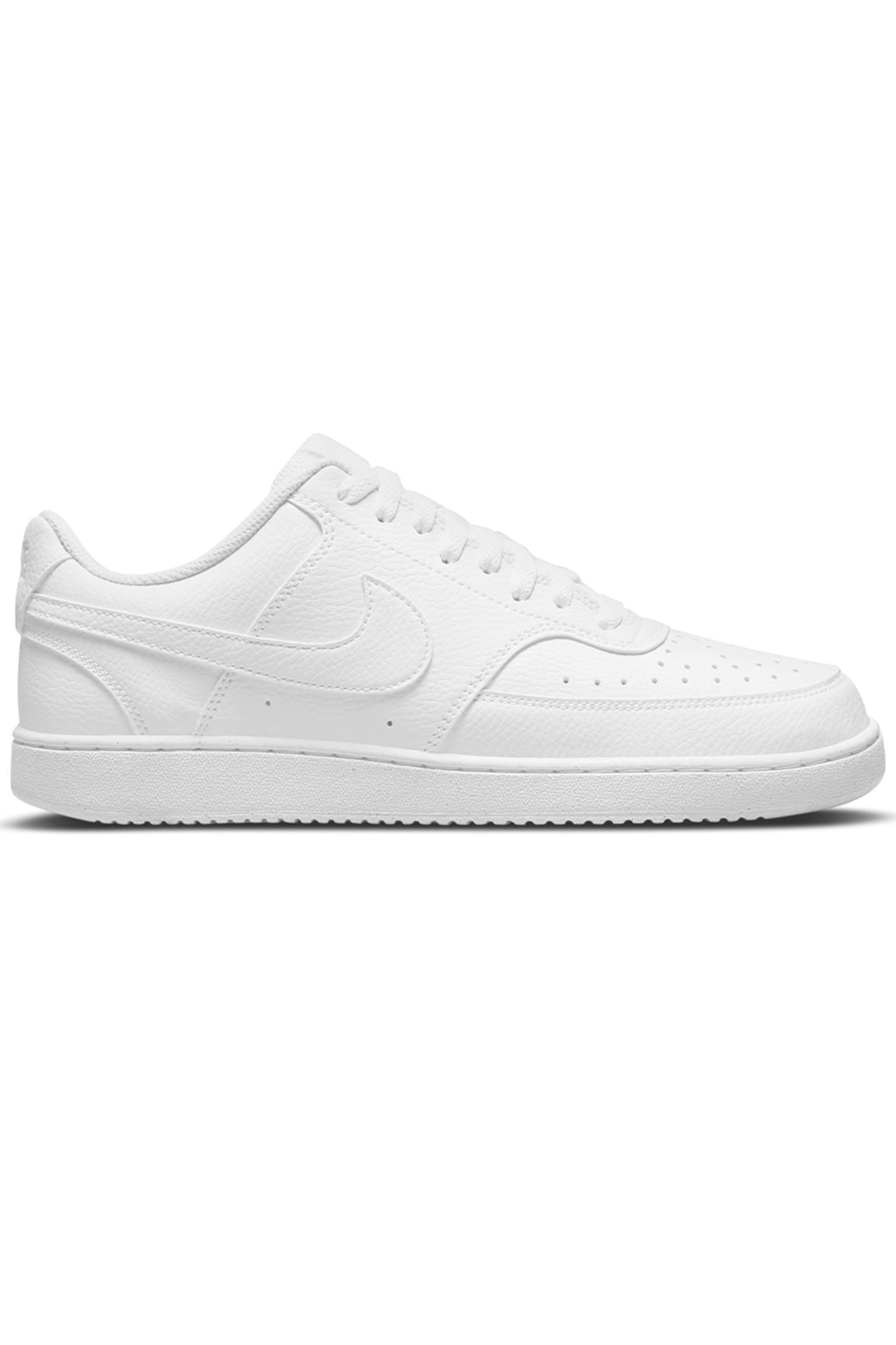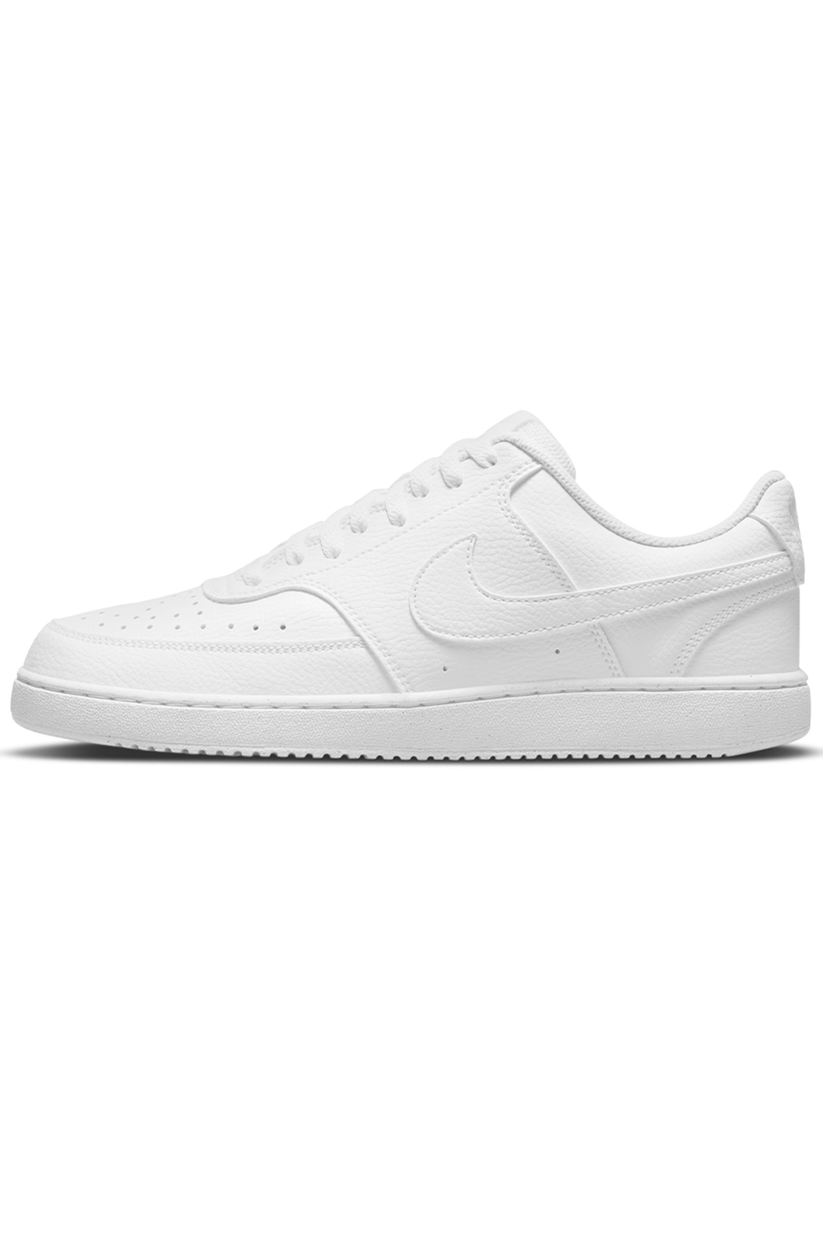 Ricalcando il classico look da basket anni '80, le Nike Court Vision Low Next Nature dimostrano quanto il brand di Beaverton si stia impegnando per un mondo più sostenibile: il 20% del peso è stato infatti realizzato con materiali riciclati per ridurre emissioni di carbonio e rifiuti. La tomaia in morbida ma resistente pelle martellata ed il profilo basso stringato le rendono ideali da utilizzare quotidianamente. Il collare imbottito offre supporto e comfort al piede, mentre i fori applicati ai lati e sulla punta favoriscono traspirabilità e freschezza. Look completato dagli Swoosh laterali in tinta con impunture tono su tono, etichetta cucita sulla linguetta e logo wordmark applicato sul tallone. Suola in gomma con motivi circolari che assicurano aderenza al suolo.