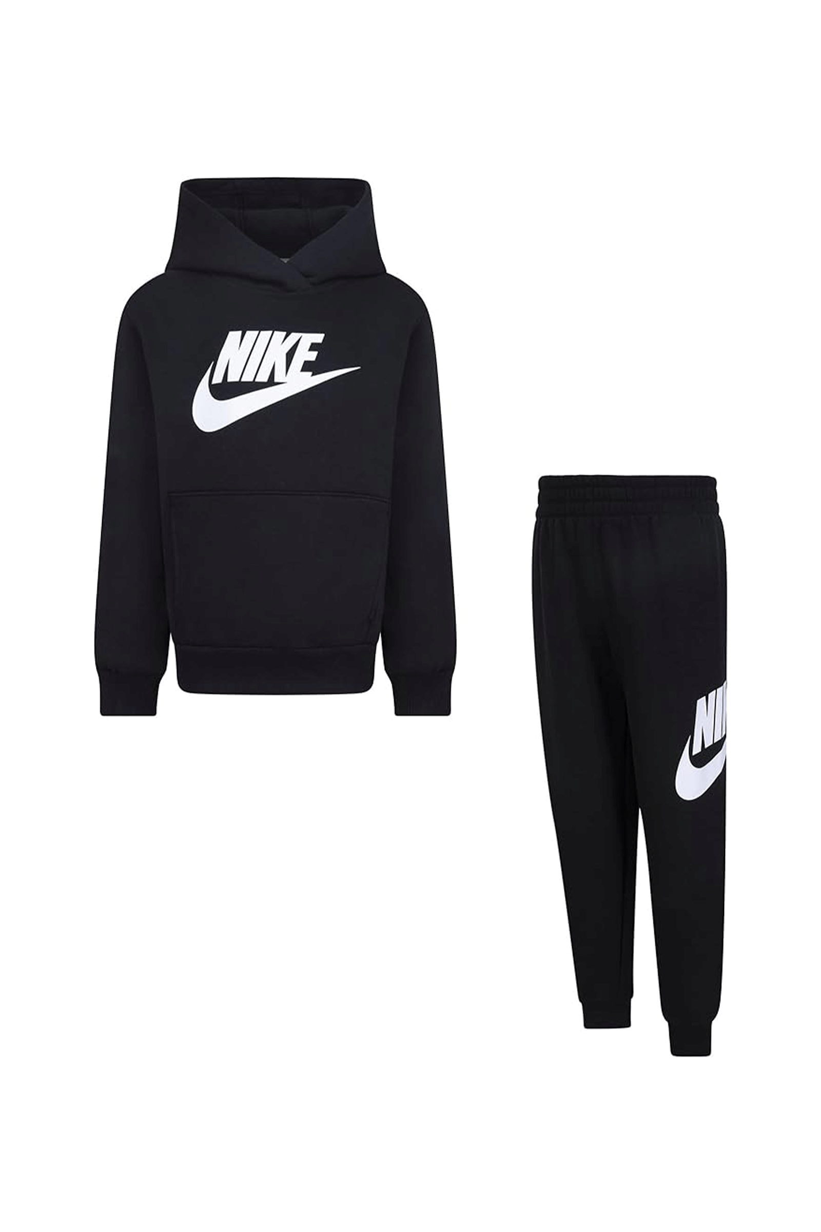 Lascia giocare i tuoi piccoli in piena libertà con il set coordinato Club Fleece di Nike Sportswear. Realizzato in morbido fleece di misto cotone con interno spazzolato, si compone di una felpa pullover con cappuccio, ampia tasca anteriore, polsini e fondo in maglia a costine e stampa del log al centro del petto. I pantaloni modello jogger presentano polsini alle caviglie e girovita elasticizzato con coulisse interna, e sfoggiano un ampio logo stampato lateralmente.