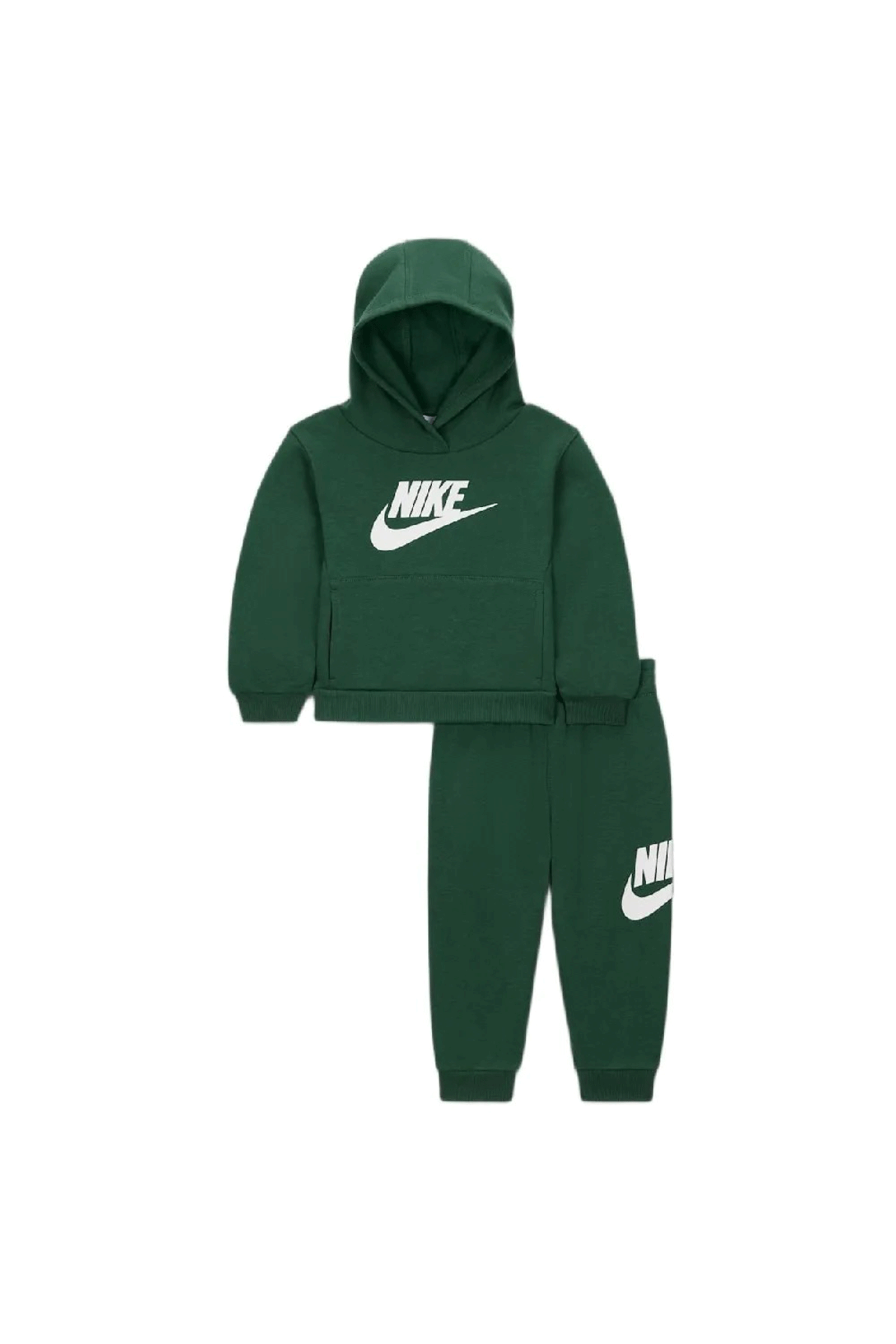 Lascia giocare i tuoi piccoli in piena libertà con il set coordinato Club Fleece di Nike Sportswear. Realizzato in morbido fleece di misto cotone con interno spazzolato, si compone di una felpa pullover con cappuccio, ampia tasca anteriore, polsini e fondo in maglia a costine e stampa del log al centro del petto. I pantaloni modello jogger presentano polsini alle caviglie e girovita elasticizzato con coulisse interna, e sfoggiano un ampio logo stampato lateralmente.