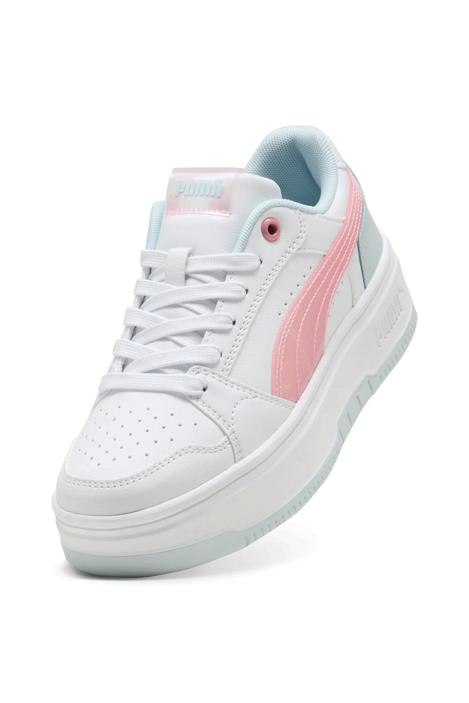 Un modello da basket trasformato in una silhouette fresca e femminile: le Puma Rebound Femme Space Belle uniscono la suola platform delle Rebound Femme alla palette di colori vivaci Space belle, per un risultato di tendenza e giovanile.