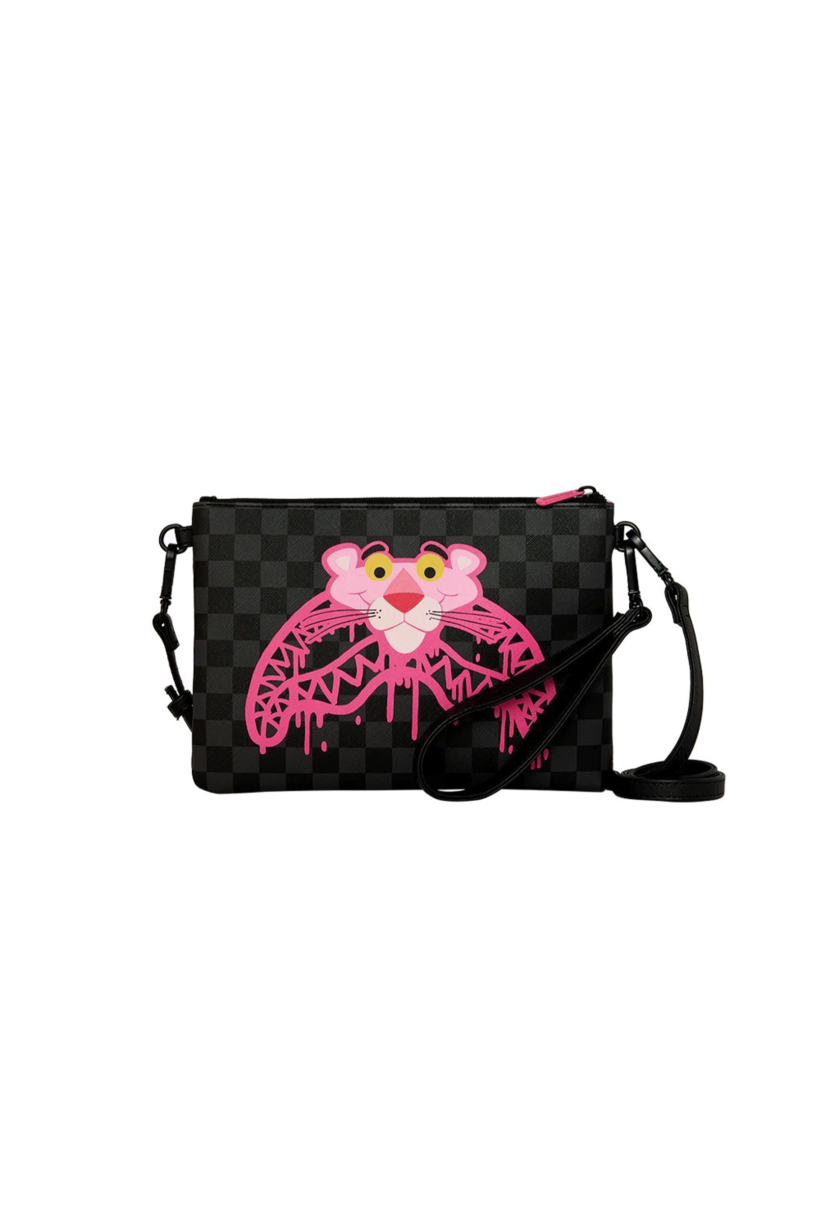 La nuova pochette con tracolla Pink Panther Drippy Diamonds di Sprayground arriva per aggiungere carattere e personalità al tuo stile quotidiano. L'iconica grafica del personaggio si combina infatti al classico motivo a scacchi del brand e a dettagli gocciolanti che rendono l'estetica di questo accessorio streetwear giocosa ma al tempo stesso elegante.